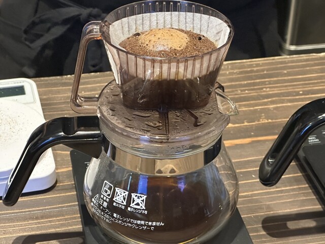まず豆の状態、粉、淹れたてと匂いの確認をさせてくれます。
