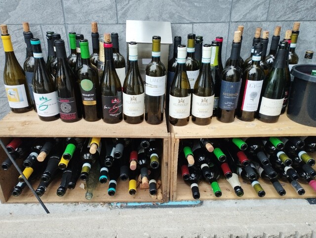 定休日でしたが、店の外に並んだワインボトル・・・私の第六感が此処は絶対美味しい、来ないとダメ