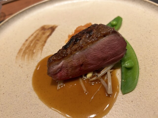 ●青森県産鴨胸肉のロースト プラリネと赤味噌