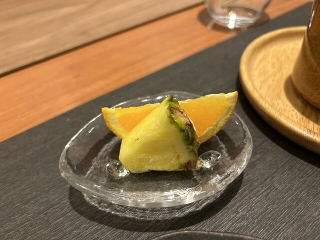 デザート、小菓子3種の後にフルーツで〆