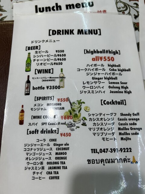 さらにお茶やコーヒーのドリンクバーまで付いてガパオやグリーンカレー1種なら850円?!しかも税込