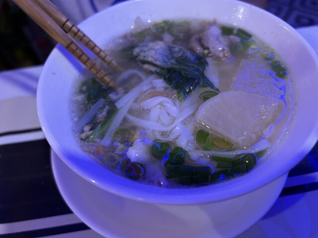 フォーなのかな?小麦粉ではない平たい半透明の麺がかなりの量入ってます