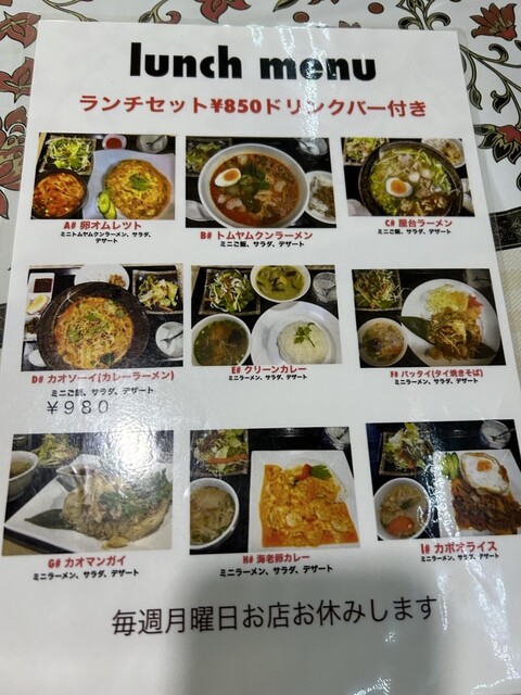 屋台ラーメンランチセット サラダ、ミニガパオ,デザート付き