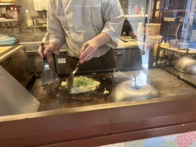 とんぺい焼きwエアーズロックか!これで1800円は良心的すぎ。生地はシャバーってかけた程度の薄さだった
