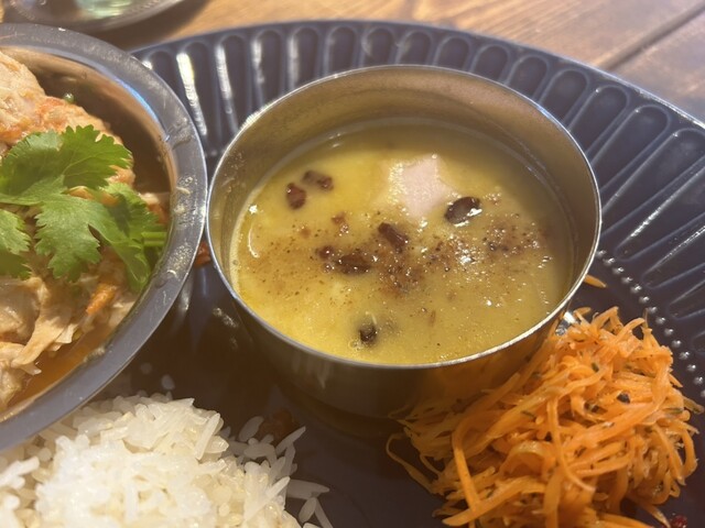 サツマイモとダルのカレー ペーストだけでなくダルとサツマイモの角切りも入ってました。