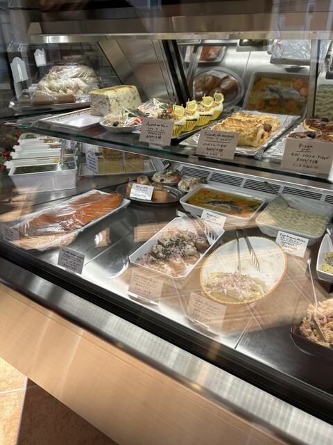シャルキュトリー以外も、豆のサラダや、サーモンなどのお惣菜やバケットサンドなどもあり、少しずつ内容が変わってて、その引き出しの多さに驚かされます♪( ´θ`)