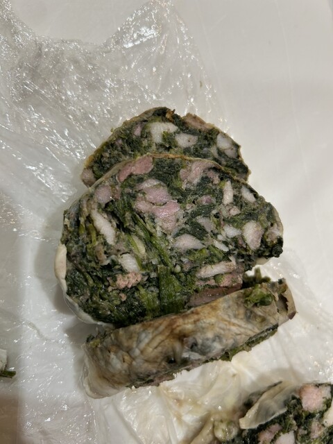 カイエットさん。本当野菜主体でほうれん草たっぷり!網脂の香ばしさとしっかり目の塩味でワインごくごくー