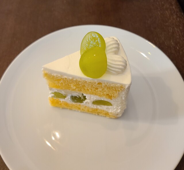 今回の注文は、シャインマスカットのショートケーキ720円とアイスコーヒーが通常670円のところセット価格で640円。
