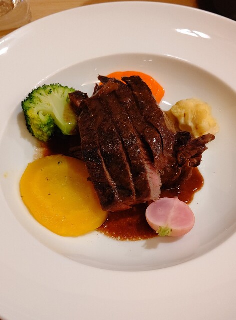 牛肉のグリエとブレゼにしました。グリエは肉をシンプルに火を通した香ばしさが綺麗で、ブレゼの方は柔和さが活きています。ここに赤ワインソースを合わせると、美味さが広がりますね~♪ ガルニチュールの方も相変わらず手抜きがないし、さすがです。