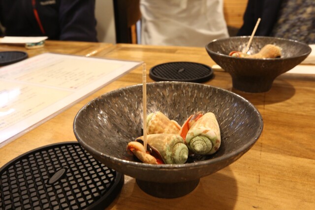 あまみの魚たち、再訪。前回、訪れてから半年ぶりの2回目。前回、あまりにも素晴らしかったので、今回も訪問。お酒は黒糖焼酎一筋。8000円のコース。最初はカツオの藁焼き。美味しいが、これはそれほど驚かない。しかし、次に出てきた「あさひがに」は驚いた。まるで、カブトガニのようだ。身はたらばガニと伊勢エビの間を取ったような味。黙々と食べる。次はイクラの醤油漬けが出る。これは、奄美のお魚ではないようだ。そして、烏賊焼きが続く。そして、ここでお刺身。その後、サザエが出て、千年鯛。この千年鯛は唸るほど美味かった。最後には〆のマグロ漬けご飯。ううむ、最高の晩餐でした。