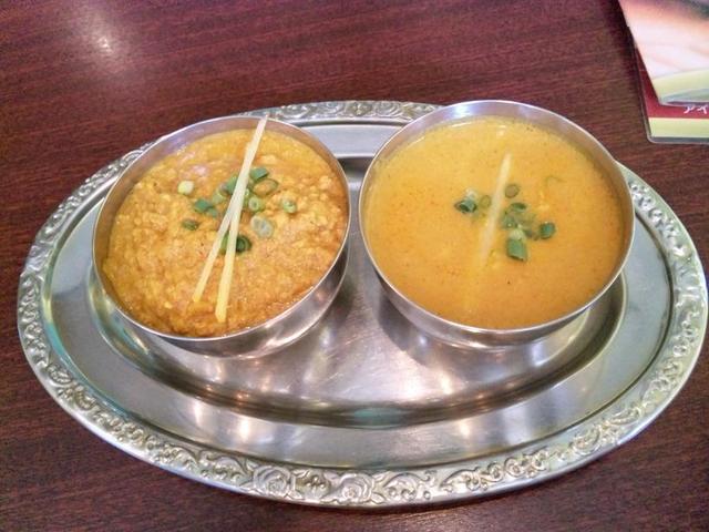 Dセットのカレー(左がキーマ、右がチキンカシミール)