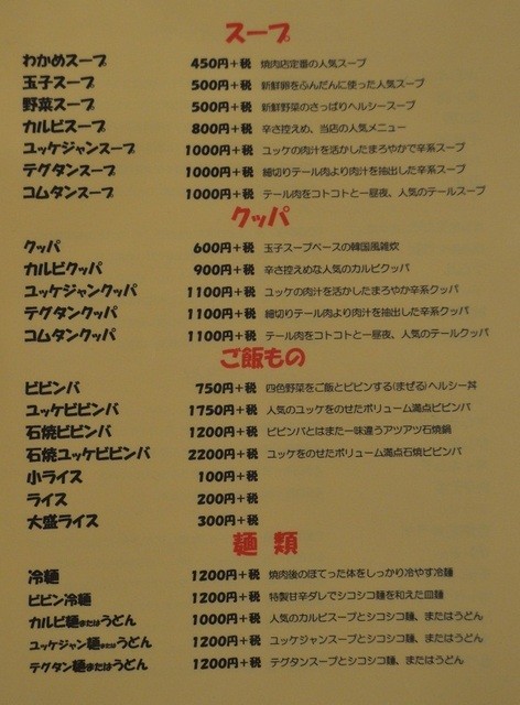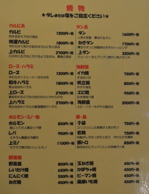 ねぎタン(1,836円)、カルビ(1,296円)、ホルモン(918円)、