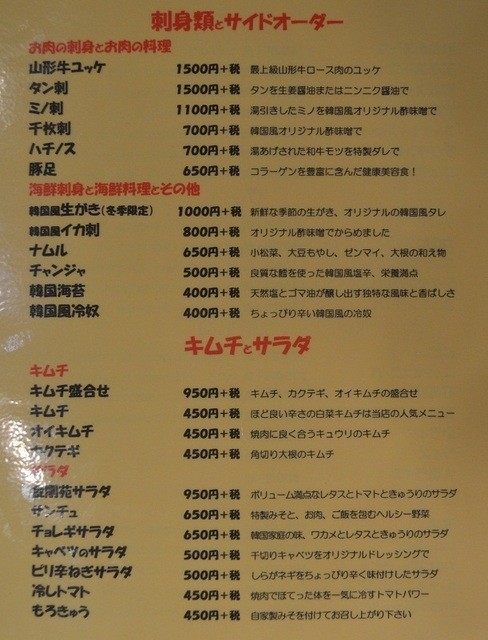 キムチ(486円)、サンチュ(702円)、タン(1,728円)、