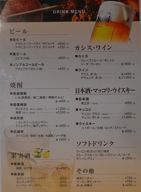 ドリンクメニュー