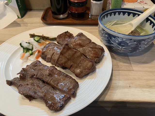 希少部位の牛タンと、普段から提供している牛タンの食べ比べということで期待をしていたのですが、もはやステーキと言える厚さの牛タンに仰天です。お店の方もレアで焼いているので、焼き加減変えたかったら言ってね、とのこと。半分はレアのままで、残り半分はミディアムに焼き直して頂きました。
