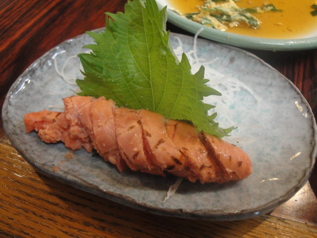 すると、サービスで鶏の身塩漬けの小鉢を頂いちゃいました。