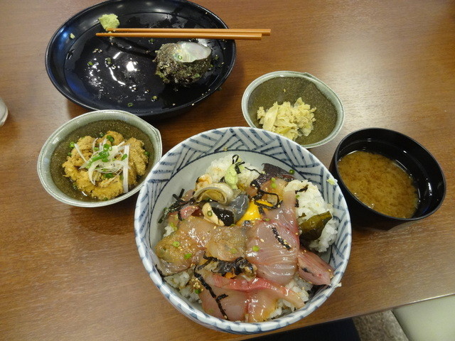 早朝に漁港内食堂でいただく朝ご飯はお味もボリュームも満足した
