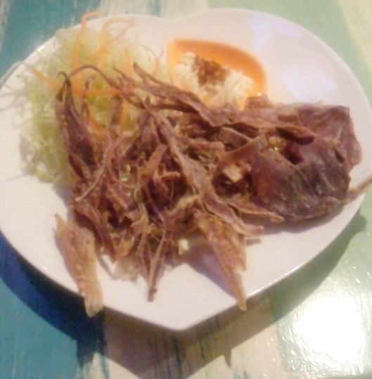 しっかりした歯応えとピリ辛チリソースにディップして頂くお味は