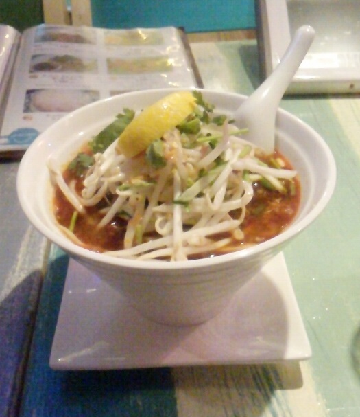 新メニュー「ソムタンロー」は結構辛いタレにつけて頂く生春巻き。