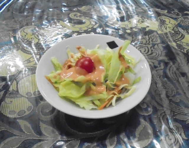 ニンニクやチリの入った甘辛いソースをかけていただく料理です。