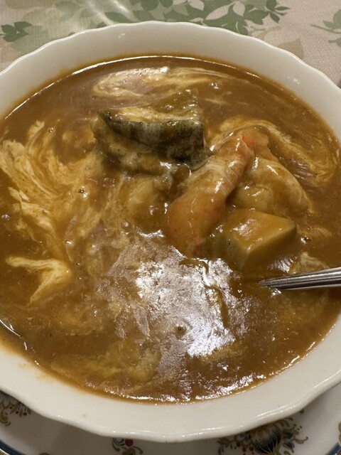 志摩市役所近くにある、評判の高い洋食屋さんを訪問。予約できないとのことだったけどすぐに入店。マツコでも取り上げられた、シェフおまかせカレーがお目当てで、ほんのりスパイスも効いて、アワビ、カニ、ホタテがゴロッと入っててバツグンのウマさ。そのほか、しっかり煮込んでた煮込みハンバーグ、こつらもスパイスがきいてた生ハムとガーリックスパゲッティ、海鮮ドリアとフルーツサラダを実食。大満足です、ぜひご賞味あれ。ちなみに店員さんは、ちょい塩対応