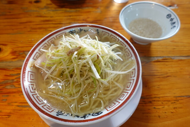 カウンターにあるサービスの揚げ葱をトッピングするとサクサクと香ばしい感じがプラスされてこれも飽きずに食べられる配慮だ。