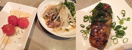 鉄板のせせりと 串焼きのトマト つくね