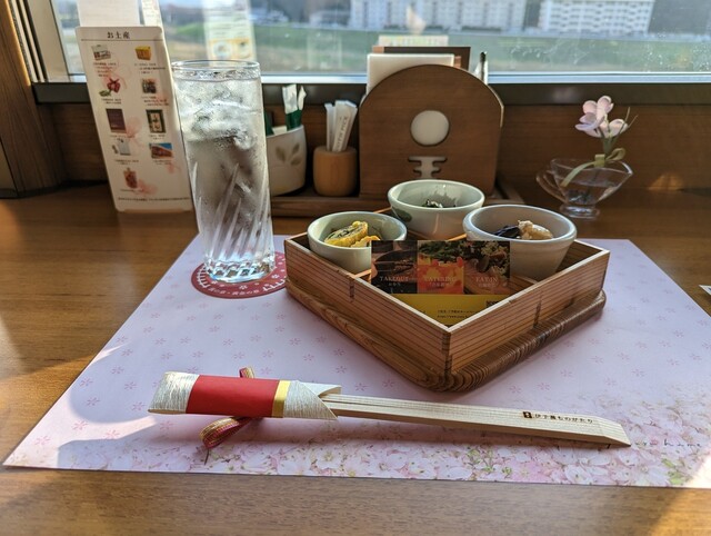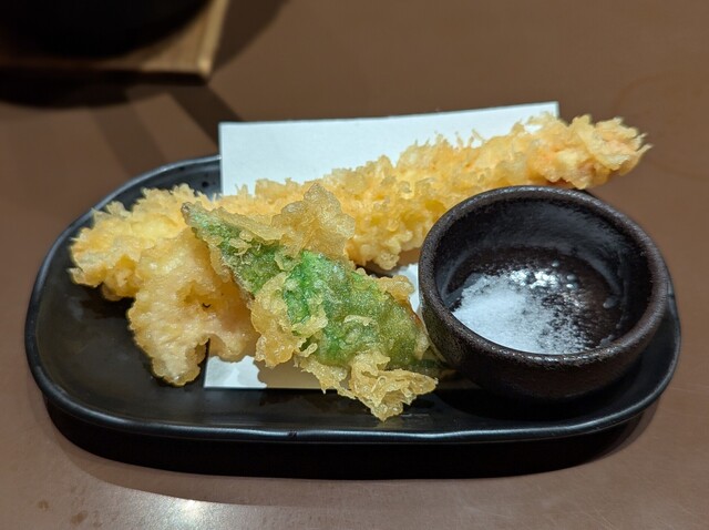 香ばしいゴボウ天と甘いエビ天、楽しい鳥の楊枝入れ(^^)b