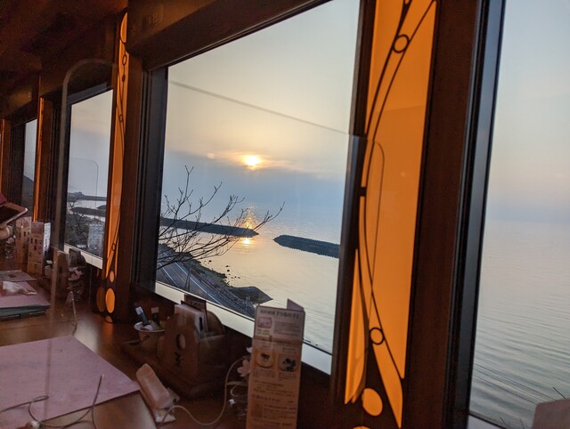 車窓から見えた海に映る夕日(2023年3月)