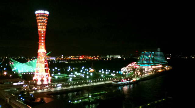 一面のガラス壁から「神戸港」の夜景を眺める事ができます。