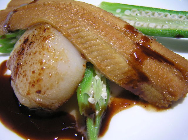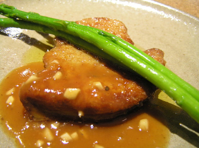 フォアグラとマコモタケのソテー(五香粉のソース)