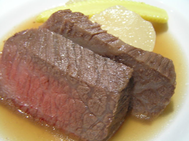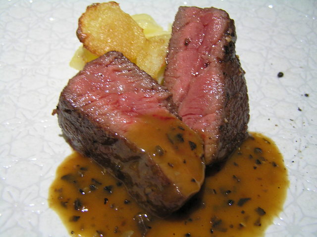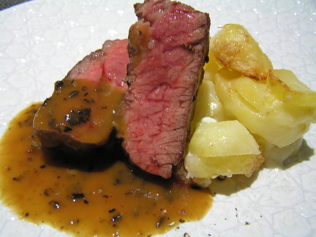 牛ハネシタ肉とフォアグラのソテー・ロッシーニ風