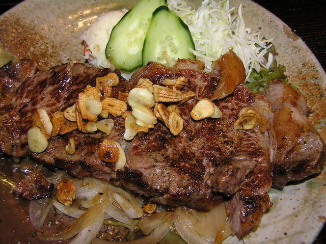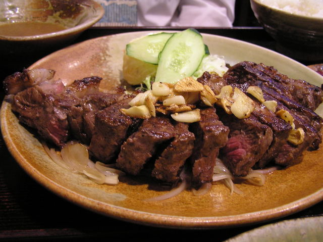私には、牛カツ定食と国産黒毛和牛サーロイン・ステーキ350㌘(ウェルダン焼き)