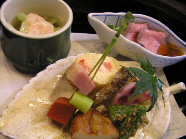 ローストビーフ・甘鯛丹波焼き・むかご寄せ・酢取り茗荷