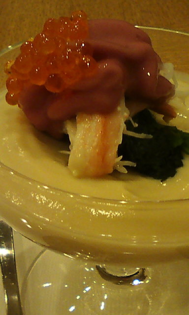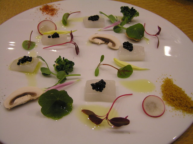 ②剣先イカとキャビアのシンプルな料理に見えますが、