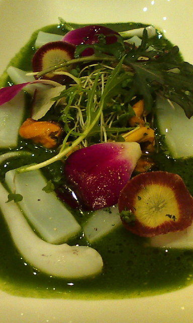 小松菜のスプラウトとセコガニで作った泡をのせてます