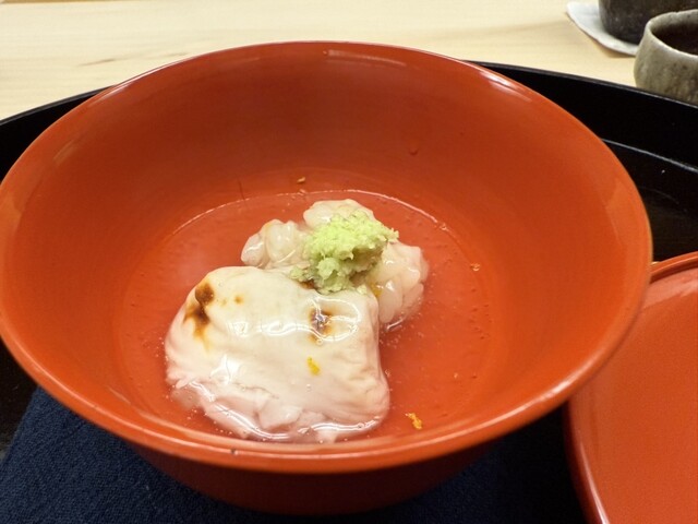 最初の汁物がこの店の矜持。さすが、片折の弟子。福岡には無かった出汁の旨さ。今日は長崎の鰤の大吟醸粕汁ですが、酒粕は控えめで、あくまで出汁を前面に押し出します。