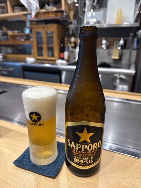 少し離れた鉄板で調理する店主さんの背中を見ながら喉を潤す。