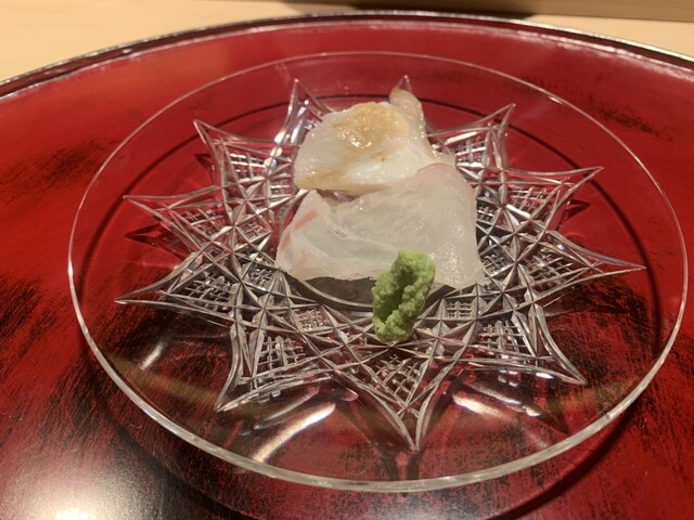 最初のお椀、クエ、メゴチ、小鯵、赤座海老、アスパラ絶品でした。