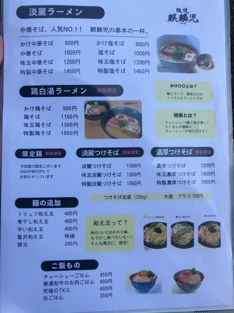 醤油、鶏白湯など食べましたが、麒麟児は塩が1番良さが出る。