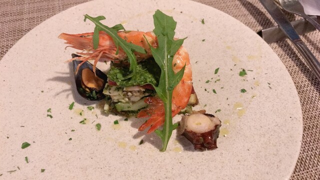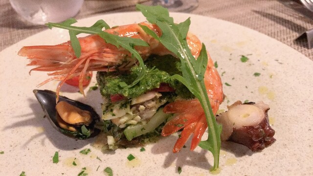 魚や魚介のミルフィーユ仕立ても斬新な一皿ですね。