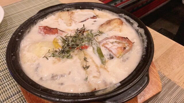 アラブ風のラビオリをヨーグルトソースで煮込んだ料理です。