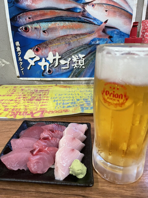 刺身は厚くて新鮮で脂ものっていて、沖縄の刺身見直さざるをえません。あら汁もテビチも、白身の鉄板焼きもビジュアル含めて良かったです。せんべろ+2品で1600円は安すぎます。