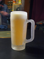 とりあえずビールをいただきます。霜がついたジョッキがすてきです。これが250円と言うところもすてきです。