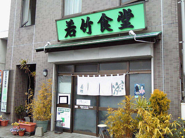 この「若竹食堂」さん。駅に降り立つとスグに目に入る若竹色の大きな看板とともに、この街に大きな存在感でもって溶け込んでいる「町の食堂」の良店である。