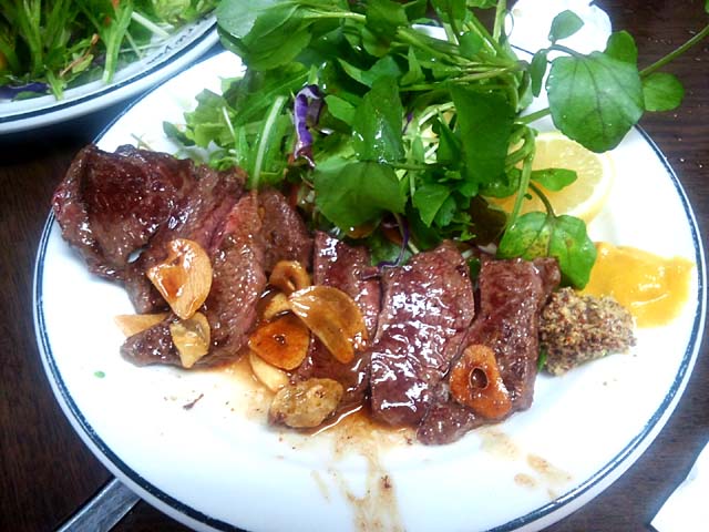 鉄板焼といえば外せないのがこのステーキだよね。言うことなしの素敵なお味。やっぱしこれが一番じゃけえ♪