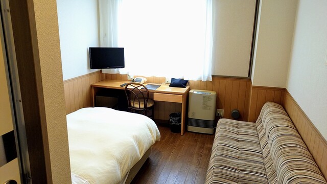 こちらのビジホ、部屋にソファがあるのが珍しい。座ることはなかったけど、荷物を広げるのに丁度よし。