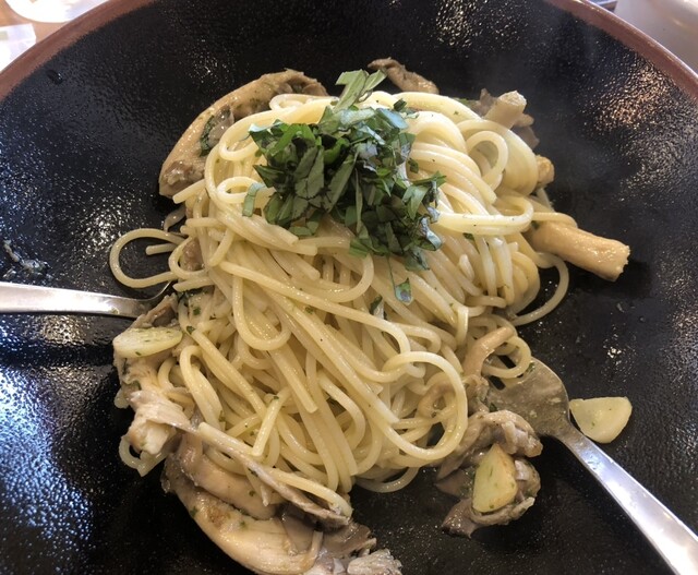お、この前菜のハム、おいしい!ペペロンチーノの野菜、おいしい!