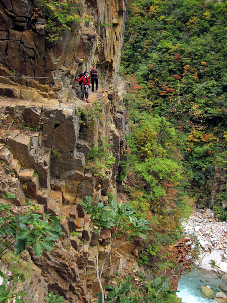 しかもその道は絶壁に掘られた幅数十センチの歩道である。
