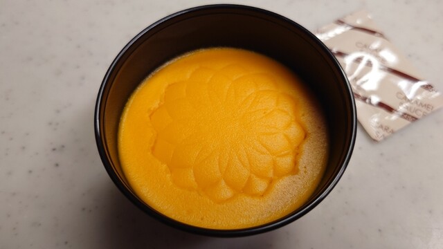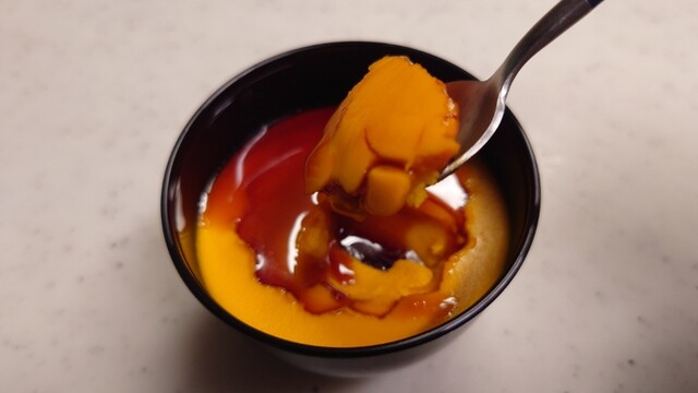 とてもしっかりした紛うことなき「焼きプリン」です。固めでねっとりとしつつ、かぼちゃの味が強い!かぼちゃのチーズケーキを食べているような感覚でした(※チーズは入っていません)。バターのコクと最後に感じる塩気も非常に良いバランス。そのまま食べても十分美味しいですが、キャラメルの甘さが加わるのもまた味変になって◎ 市販の焼きプリンと比べると、大きさは変わらないのに食べ応え&満足感があると思います。お取り寄せもできるのでリピありです。めっちゃ美味しい!!